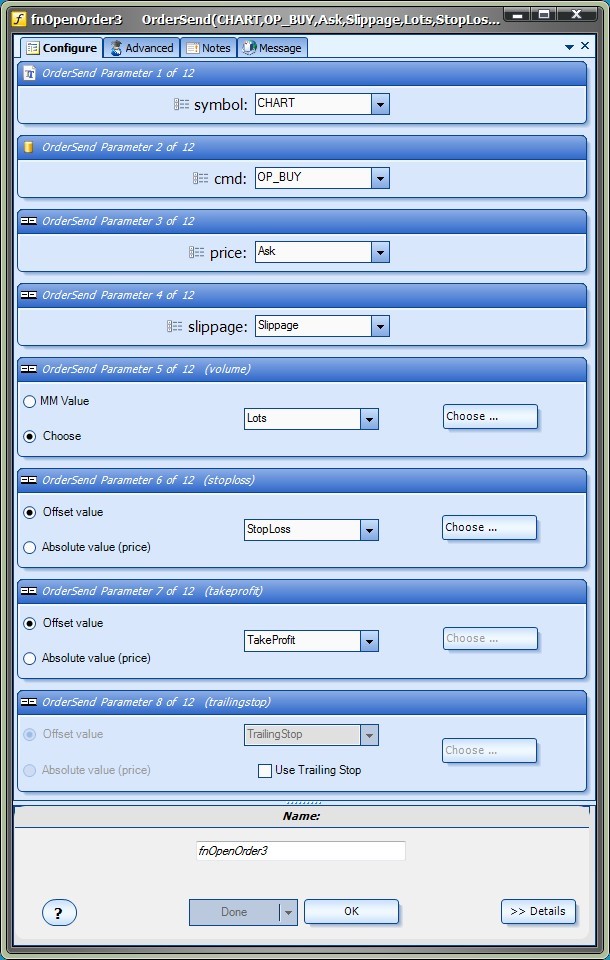 - The fnOpenOrder function is a user-friendly front end for the MQL function OrderSend.