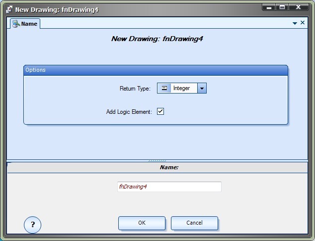 The New Drawing Window is used to name, configure and open a new Drawing Function.